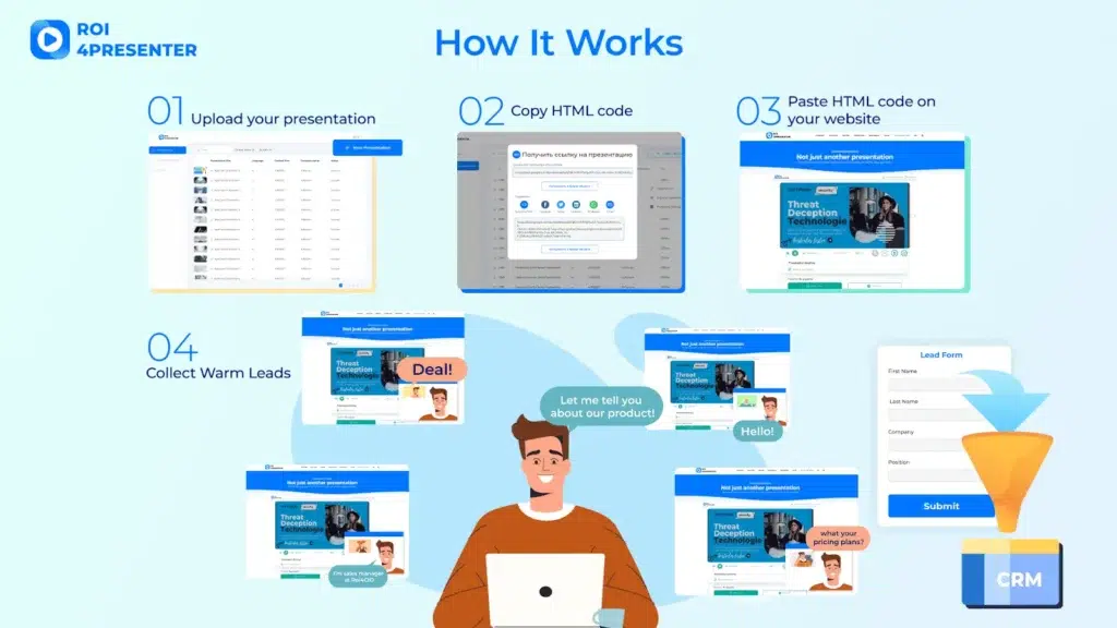 From the above, it becomes clear why the effect of many presentations is lower than expected. It’s just that their creators are focused on working with the audience live, and as a result are losing most of their leads. Time after time, they are faced with the fact that the audience who registered for the presentation does not attend, and those who did are not the people responsible for making decisions.