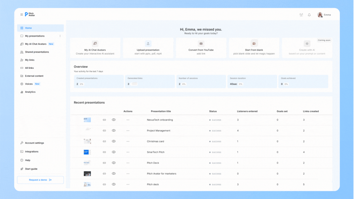 Pitch Avatar has a mobile application for iOS and Android with which your smartphone becomes the control panel for your show. It also receives notifications when the user has started watching the presentation. However, we recommend uploading presentations and setting them up on the web desktop, as it is more convenient)